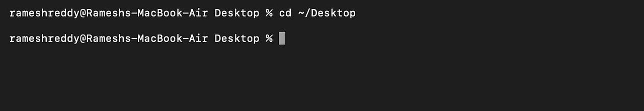 1단계: 기기에서 터미널을 열고 비디오 파일이 있는 폴더로 이동합니다. 이 경우, 제 비디오 파일은 바탕 화면에 있습니다. 다음 명령을 사용하여 비디오 파일 폴더로 이동할 수 있습니다.