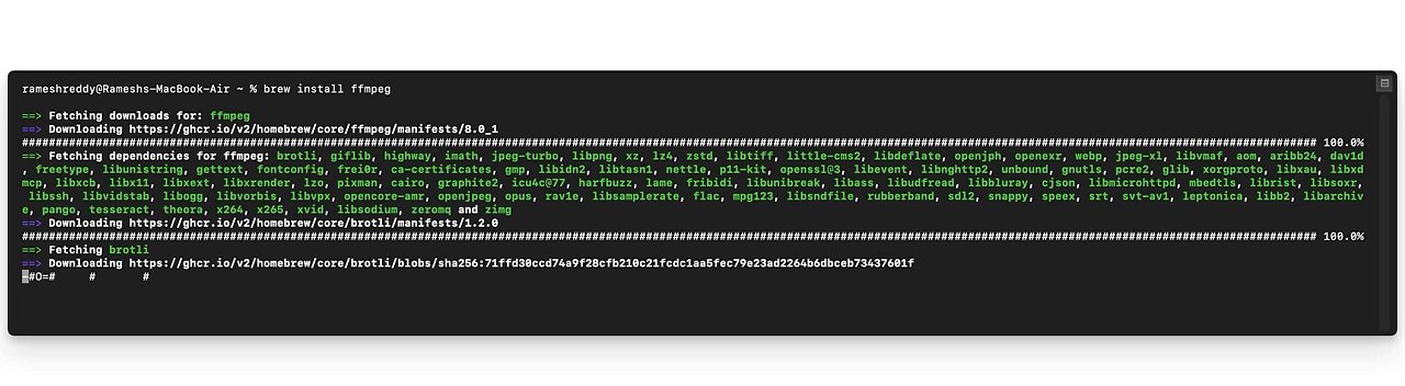 다음 간단한 명령을 사용하여 Homebrew를 사용하여 Mac에 설치할 수 있습니다: brew install ffmpeg
