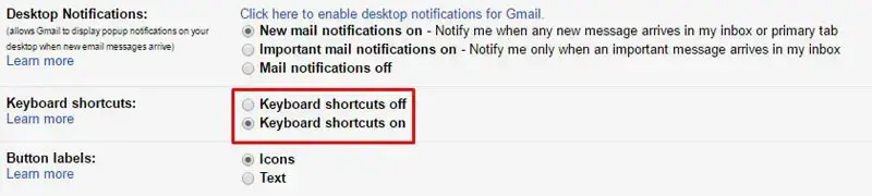 실제 목록은 충분히 깁니다. 이러한 단축키를 사용하려면 '설정'으로 이동하여 '키보드 단축키' 섹션으로 이동해야 합니다. 기본적으로 꺼져 있습니다. 전체 키보드 단축키 세트를 활성화하려면 다른 옵션을 선택하십시오. 많은 이메일을 관리하고 싶을 때, 이 바로가기는 충분히 유용합니다. 여기에서 전체 목록을 확인할 수 있습니다.