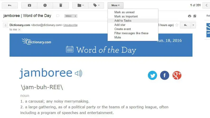 확인하고 회신할 이메일이 100개 있다고 가정해 보겠습니다. 어떤 것도 빠뜨리지 않고 제시간에 모두 완료했는지 어떻게 확인합니까? 사용할 수 있는 유용한 Gmail 트릭 중 하나는 이메일을 작업으로 변환하는 것입니다. 그렇게 하려면 이메일 대화를 열고 더보기를 클릭한 다음 '작업에 추가'를 선택하세요.