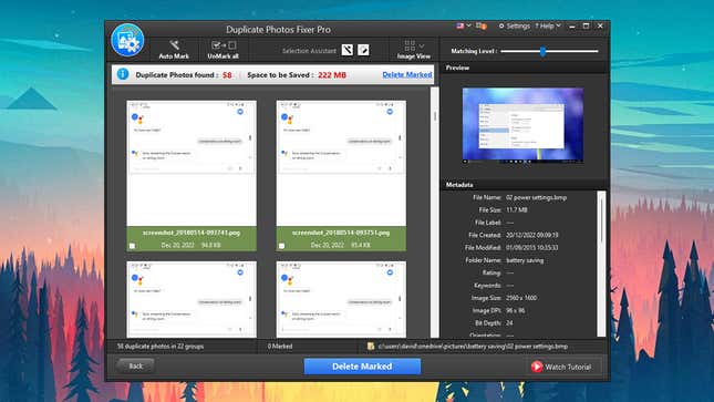 또 다른 포괄적인 옵션은 Duplicate Photos Fixer Pro 로 Windows, macOS, Android 및 iOS에서 작동하기 때문에 마음에 듭니다. 40달러를 돌려받을 수 있지만 무료로 사용해 볼 수 있으며 검색하는 위치와 중복 항목 간의 정확한 일치를 원하는 측면에서 수많은 옵션을 제공합니다.