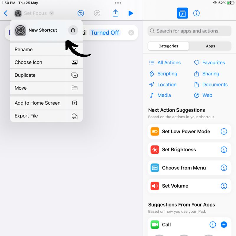 단축어 앱을 사용하면 앱 열기, 메시지 보내기, 기기 설정 조정, 웹에서 정보 가져오기, 스마트 홈 기기 제어 등 iPad에서 다양한 작업을 자동화할 수 있습니다. 이 앱은 동작을 드래그 앤 드롭하여 바로가기를 만들 수 있는 시각적 인터페이스를 제공합니다. 필요에 맞게 각 작업을 사용자 지정하고 구성할 수도 있습니다.