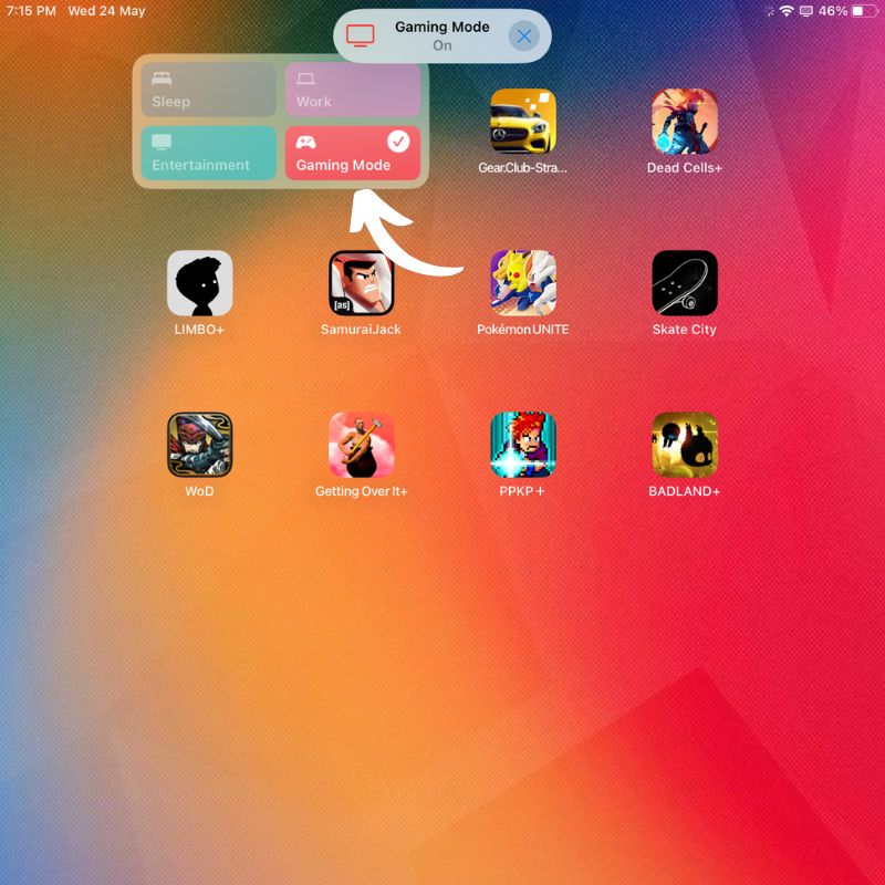 iPad 화면의 오른쪽 상단에서 아래로 스와이프하여 제어 센터의 초점 모드 옵션을 사용하여 홈 화면을 전환하거나 각 홈 화면에 바로 가기 앱 위젯을 배치하여 원활하게 전환할 수 있습니다. 이렇게 하려면 아래 단계를 따르십시오.