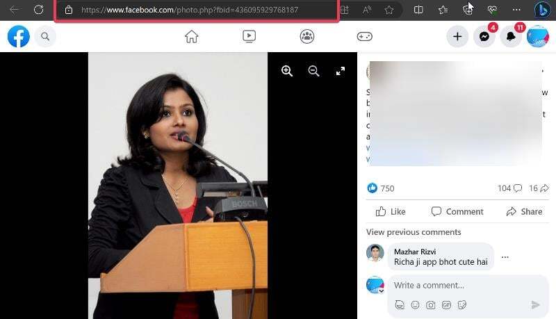 3. 브라우저를 열고 Facebook 계정으로 로그인합니다. 그런 다음 주소 필드에 URL https://www.facebook.com/photo.php?fbid=XXXXX 를 입력합니다. 사진 ID는 XXXXX가 있는 곳에 있습니다. 그래서 이 글에서 사용하는 이미지 예시는 주소창에 https://www.facebook.com/photo.php?fbid=436095929768187을 붙여넣겠습니다.