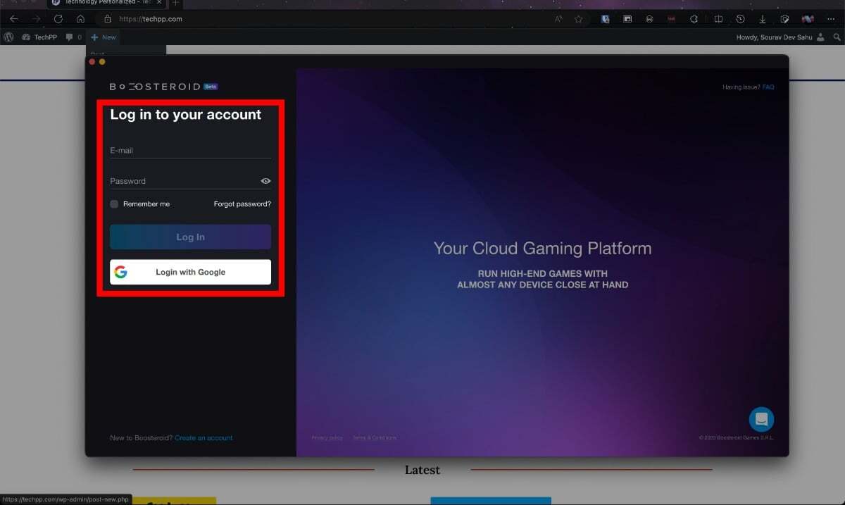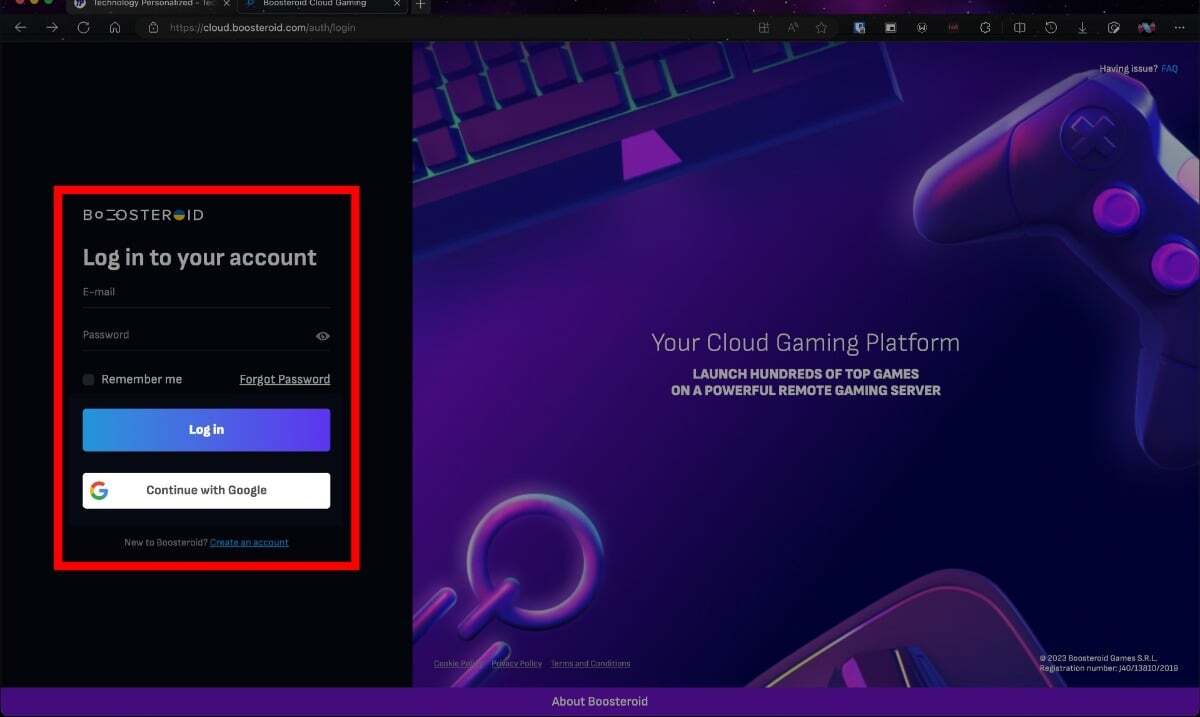 - 지금 플레이 를 클릭합니다. 그런 다음 Google 또는 Boosteroid 계정을 사용하여 로그인합니다 .