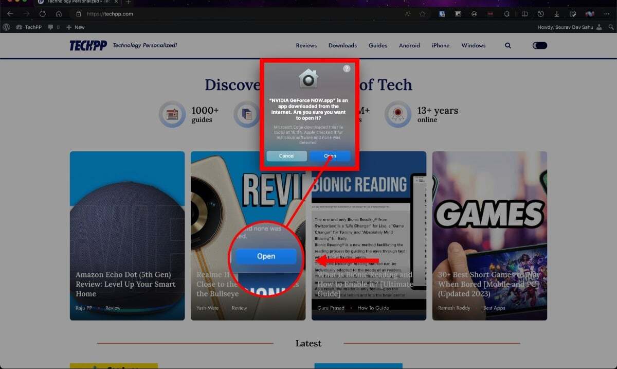 - GeForce Now 웹사이트 로 이동하여 Mac OS에서 다운로드 옵션을 선택합니다 .