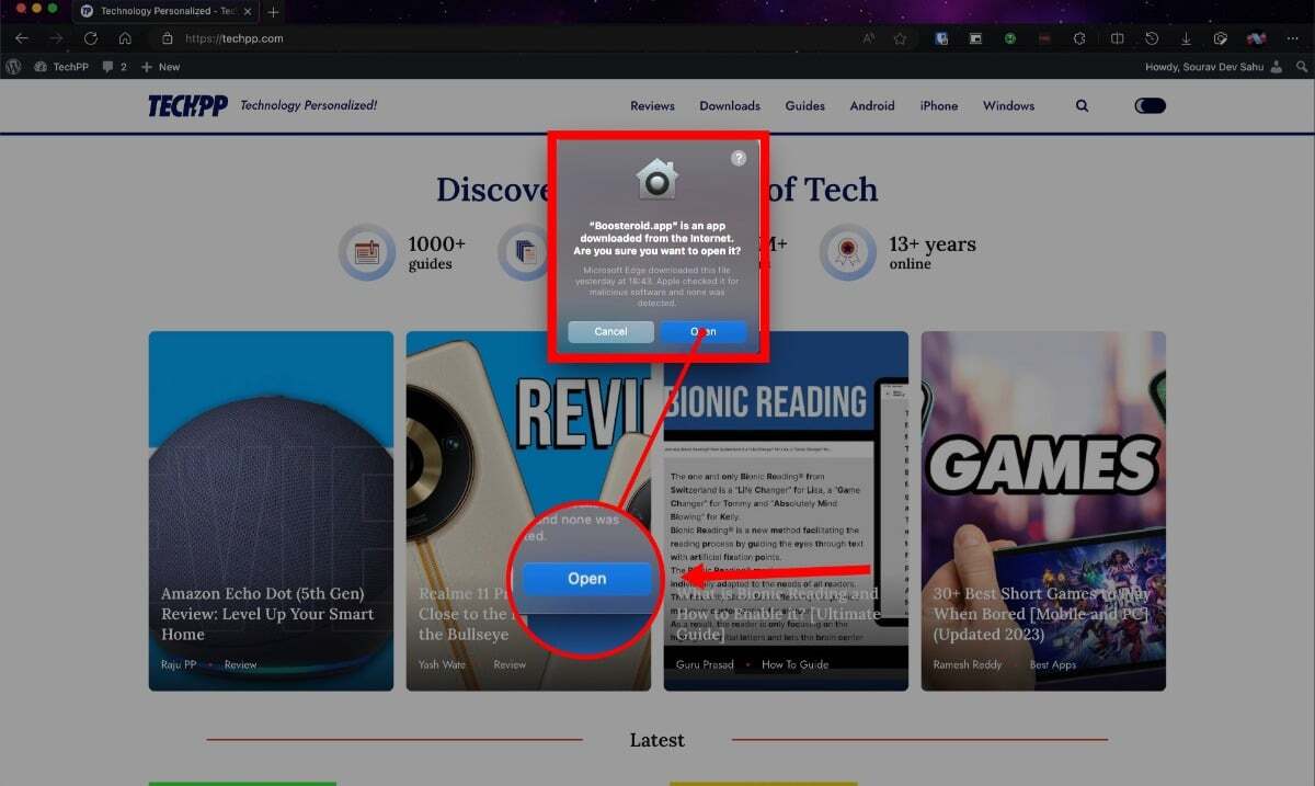 - 이제 앱이 응용 프로그램 폴더에 표시됩니다. 응용 프로그램을 실행하고 macOS에서 확인을 요청하면 열기를 선택합니다.