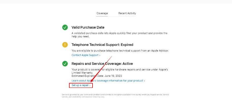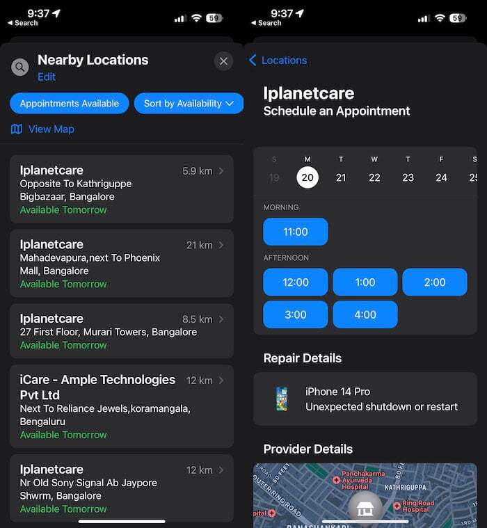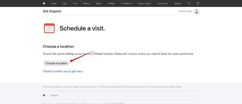 - 이제 "솔루션" 섹션에서 "수리를 위해 제출"을 찾습니다. Genius Bar에서 약속을 잡으려면 위치 찾기를 클릭하십시오.