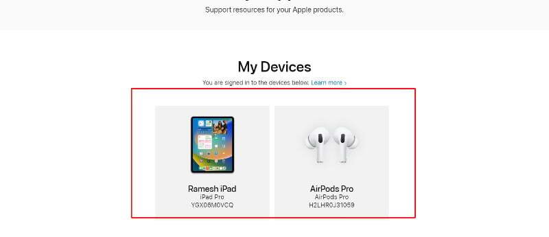 - 로그인한 후 "제품 선택"을 클릭하면 Apple ID에 연결된 장치 목록이 표시됩니다. 이제 Apple ID에 연결된 장치 목록이 표시됩니다. 문제가 있는 장치를 클릭하십시오.
