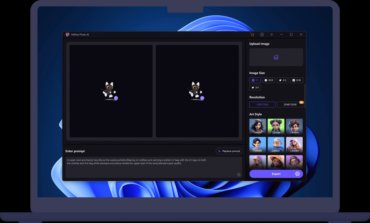 HitPaw Photo AI는 선호하는 텍스트 프롬프트를 입력하여 멋진 예술적 이미지를 생성할 수 있습니다. 이는 HitPaw AI 아트 생성기의 AI 생성 애니메이션 아트 제공을 사용할 수 있음을 의미합니다.