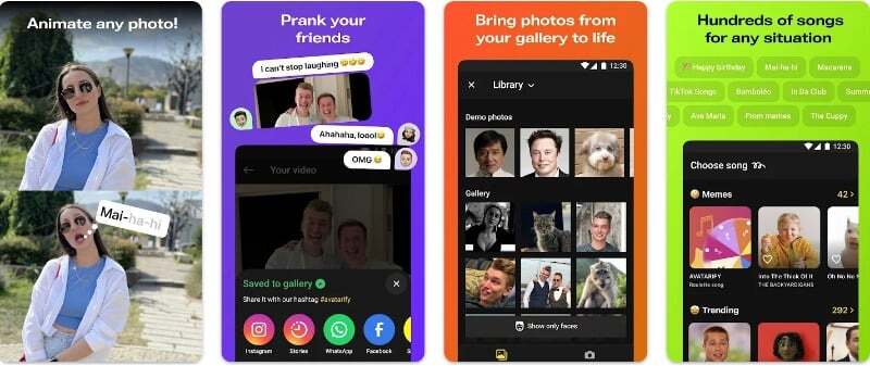 - Avatarify: AI Face Animator: 다양한 표정과 활동으로 사진에 애니메이션을 적용하고 무료 및 프리미엄 버전을 제공합니다.
