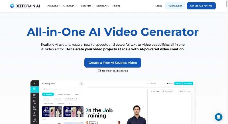 - AI 생성 비디오: Deepbrain AI는 사실적인 AI 생성 비디오 제작 및 콘텐츠 제작 간소화를 전문으로 합니다.