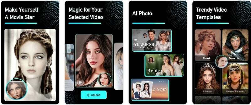 Facehub 는 재미있는 딥페이크 동영상을 만들고 친구들과 공유하려는 또 다른 인기 앱입니다. 이 앱은 AI를 사용하여 비디오 속 얼굴을 교환합니다. 이 앱에는 얼굴을 영화나 TV 프로그램의 장면으로 바꿀 수 있는 방대한 영화 클립 컬렉션이 있습니다. 이 앱에는 AI 사진을 만들고 예술, SF, 만화, 바비 공주, 증명사진 효과 등의 스타일을 적용할 수 있는 AI 사진 편집 도구도 있습니다.