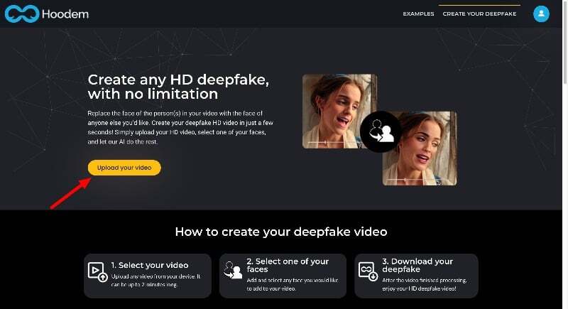 Hoodem.com은 딥페이크 비디오를 제작하는 또 다른 인기 웹사이트입니다. 웹사이트에서는 누구나 2분 안에 딥페이크 동영상을 만들 수 있습니다. 고품질 딥페이크 동영상을 제작합니다.