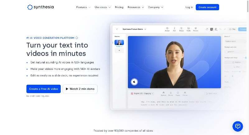 - Synthesia.io: 이 웹사이트를 사용하면 사용자 정의 가능한 템플릿을 사용하여 여러 언어로 다양한 아바타와 음성이 포함된 AI 기반 비디오를 만들 수 있습니다.