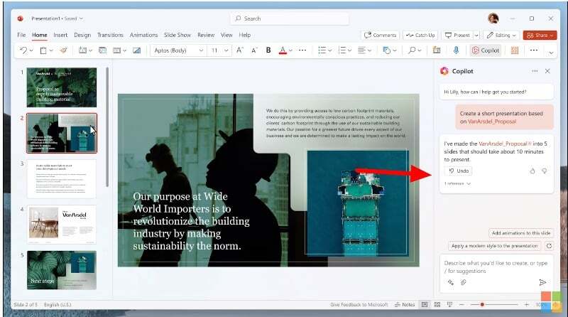 Microsoft는 널리 사용되는 PowerPoint 소프트웨어에 AI 기능을 통합하여 AI가 포함된 PowerPoint를 쉽게 만들 수 있도록 하고 있습니다. Microsoft 서비스의 새로운 AI 부조종사를 사용하면 간단한 텍스트 입력만으로 PowerPoint를 생성할 수 있습니다. 또한 AI 부조종사는 다른 마이크로소프트 도구와 통합돼 경험을 만들어내는 최적화된 파워포인트를 만든다.