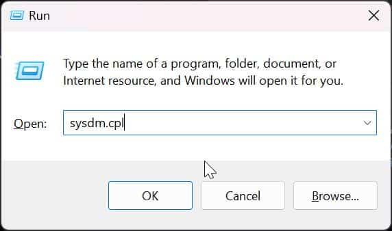 2. sysdm.cpl상자에 입력하고 Ctrl + Enter를 눌러 관리자 권한으로 시스템 속성을 엽니다