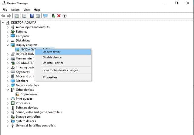 4. 이제 장치 관리자로 돌아가서 디스플레이 드라이버를 마우스 오른쪽 버튼으로 클릭하세요.