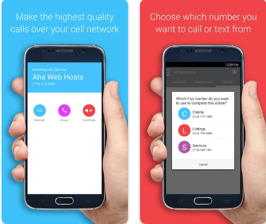 Flyp은 Google Voice의 유료 대안이며 여러 개의 가상 전화번호를 제공합니다 하나의 기기에서 최대 5개의 전화번호를 사용할 수 있으며, 업무용, 고객용, 동호회용 등 별도의 번호를 가질 수 있습니다.