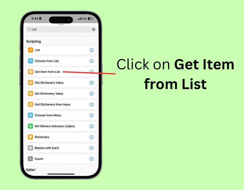- 6단계: 목록에서 항목 가져오기 작업 을 클릭합니다.