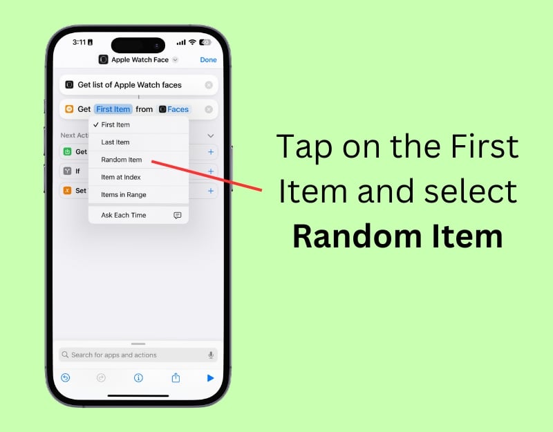 - 7단계: 작업에서 ' 첫 번째 항목' 을 클릭 하고 ' Random'을 선택합니다.