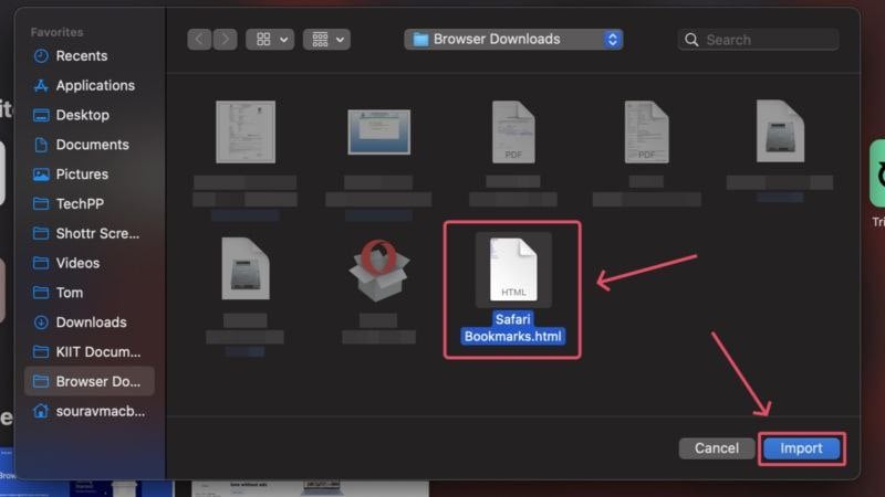 - 왼쪽 하단에 있는 드롭다운 메뉴에서 북마크 가져오기를 선택합니다.