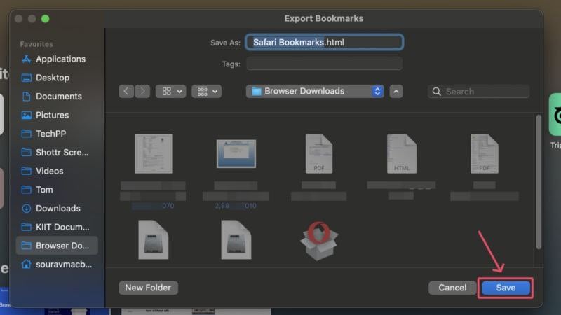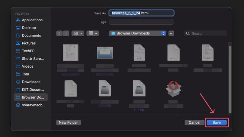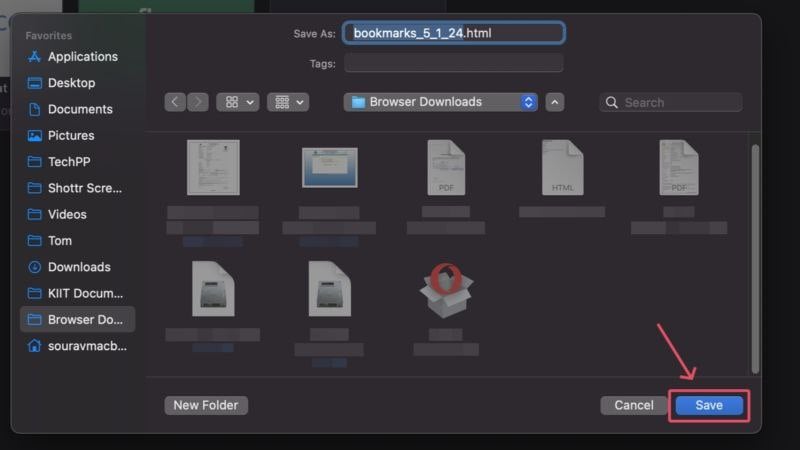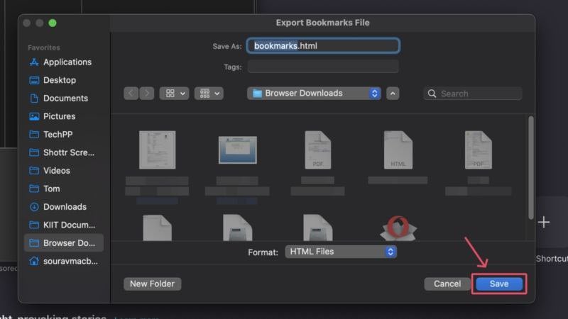 - 북마크를 새 컴퓨터로 가져오려면 파일을 저장할 위치나 외부 저장 드라이브를 선택하세요. 저장 을 클릭합니다.