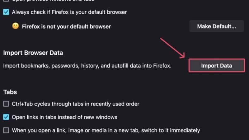 - 다른 PC에서도 동일한 단계를 수행하고 HTML에서 북마크 가져오기...를 선택할 수 있습니다. 또는 주소 표시줄에 붙여넣어 about:preferences를 방문할 수도 있습니다.