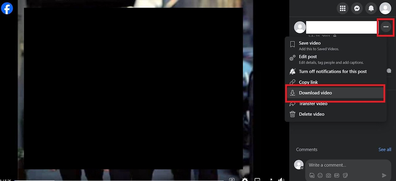 - 귀하의 이름 옆에 있는 점 3개 메뉴 아이콘을 클릭하고 비디오 다운로드 옵션을 선택하세요.