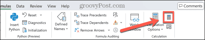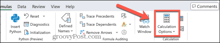 - 수식 리본 에서 계산 옵션을 클릭합니다.