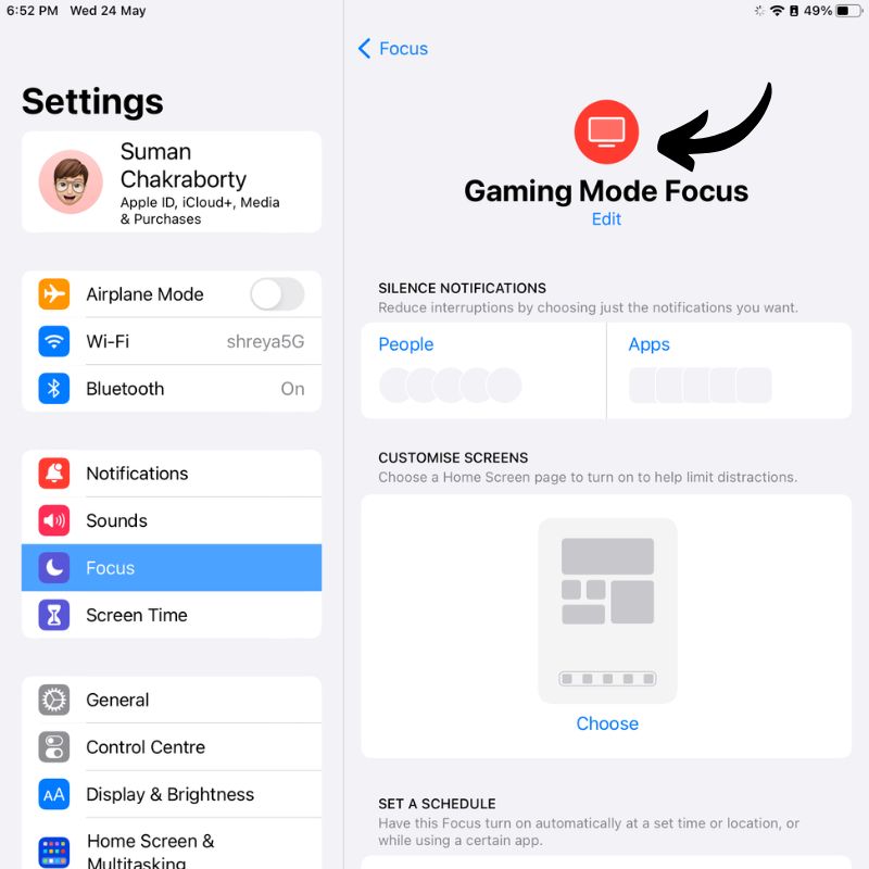 기본적으로 초점 모드를 사용 하면 사용자가 당면한 활동에 맞게 장치를 사용자 지정할 수 있습니다. 아이패드OS에는 Personal, Work 및 Sleep 과 같은 몇 가지 사전 설정 초점 모드가 있지만 사용자 정의 설정으로 자신만의 초점 모드를 생성할 수도 있습니다. 포커스 모드가 활성화되면 알림을 제한하고 홈 화면에 관련 앱만 표시할 수 있습니다. 특정 포커스 모드에서 사용하려는 연락처, 앱, 소리 등에 대한 다양한 옵션 중에서 선택할 수 있습니다.